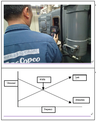 ´©¼³°ø±â´Â ³ÐÀº ±¤¿ª Á֯ļö´ë¿ªÀ» ¹ß»ý½ÃŲ´Ù. ÀϹÝÀûÀ¸·Î ´©¼³À½Àº ³ôÀº Á֯ļö´ë¿ª¿¡¼ ´õ ³ôÀº ¿¡³ÊÁö¸¦ ¹ß»ý½ÃŰ°Ô µÈ´Ù. ±×·¯³ª, Á֯ļö ´ë¿ªÀ» ´õ ³ô°Ô ÇÒ¼ö·Ï, ÃÊÀ½ÆÄ¿Í °ü·Ã ±íÀº °ø±â Àüµµ¼º(conductive air)Àº °¨¼ÒÇÏ°Ô µÈ´Ù. ¸¸¾à °ø±âÀÇ Àüµµ¼º(°¨¼è); conductivity (attenuation)°ú ÇÔ²² Á֯ļö ¿¡³ÊÁö(frequency energy)¸¦ ±×·¡ÇÁ¿¡ °°ÀÌ ±×·Áº»´Ù¸é 40 kHz ±Ùó¿¡¼ µÎ ¼±ºÐÀÌ ¸¸³ª´Â °ÍÀ» È®ÀÎ ÇÒ ¼ö ÀÖÀ» °ÍÀÌ´Ù. ±×¸®°í Leak shooter´Â ÀÌ Á֯ļö¸¦ ¼±ÅÃÇϰí, ´Ù¸¥ ¼ººÐÀ» ÇÊÅ͸µÇÏ´Â ÀÛ¾÷, Áï, ´Ù¸¥ ÀâÀ½À¸·ÎºÎÅÍÀÇ ¹æÇظ¦ ÃÖ¼ÒÈÇÔ°ú µ¿½Ã¿¡ ¿ø°Å¸®¿¡¼ ¹ß»ýÇÏ´Â ÃÊÀ½ÆÄÀÇ °¨Áö¸¦ ÃÖ´ëÈÇÒ ¼ö ÀÖ´Â ÀÕÁ¡À» °¡Áö°í ÀÖ´Ù. ¹Ù·Î ÀÌ·± Á¶ÇÕ¿ø¸®°¡ Leak shooter¸¦ °¡Àå È¿À²ÀûÀÌ°í °¡Àå À¯¸íÇÑ ÃÊÀ½ÆÄ Áø´Ü±â·Î ¸¸µé°í ÀÖ´Ù.