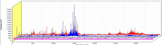 °¡¼Óµµ ¼¾¼¿¡¼ ÃøÁ¤µÈ ¾Æ³¯·Î±× ½ÅÈ£¸¦ µðÁöÅнÅÈ£·Î ¹Ù²Ù°í, FFT¿¬»ê ó¸®ÇÏ´Â DSPÀåÄ¡°¡ ³»ÀåµÈ ¡®FFTÁøµ¿ºÐ¼®±â¡¯¸¦ ÀÌ¿ëÇØ¼ ³ªÅ¸³½ ½ºÆåÆ®·³ ±×·¡ÇÁ´Â ºÐ¼®¼Óµµ¿Í °¡·ÎÃà(Á֯ļö)ÀÇ ÀÌ¿ô Á֯ļö°£ °£°Ý, ¼¼·ÎÃà(ÁøÆø)ÀÇ »óÇÏ Æø°£ °£°Ý¿¡ µû¶ó ¼º´ÉÀÌ Á¿ìµÇ´Âµ¥ À̶§¿¡ XÃàÀÇ Á¤¹Ðµµ¸¦ ³ªÅ¸³»´Â Á֯ļö°£ °£°Ý(Bandwidth)Àº 1HzÀÌÇϰ¡ µÇ¾î¾ß Á¤¹ÐºÐ¼®ÀÌ °¡´ÉÇÏ´Ù.